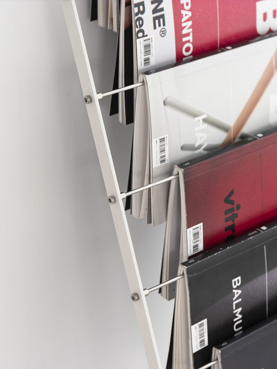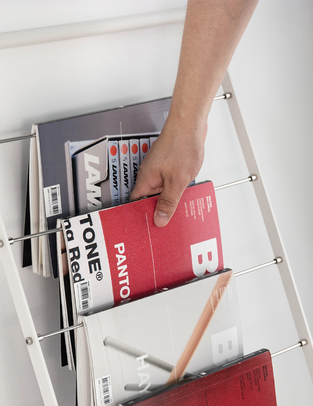 이 프로젝트는 ‘책을 걸 수 있을까?’라는 다소 엉뚱한 질문에서 출발한 컨셉입니다. 매거진 랙의 기능을 하면서도, 어느 곳이나 벽에 기댈 수 있도록 디자인하여 뛰어난 이동성을 제공합니다.